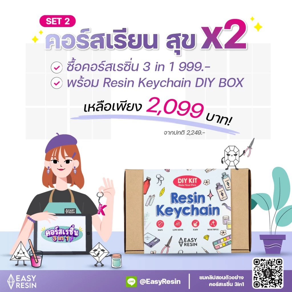 คอร์สออนไลน์ 3in1 เคสเรซิ่น พวงกุญแจ ถาดวางของที่รองแก้วรวม3คอร์สในคอร์สเดียว + Resin Keychain Set พร้อมอุปกรณ์เบื้องต้น
