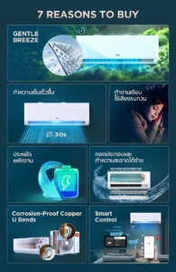 3D Air Flow (18K,24K) กระจายความเย็นแบบ 3 มิติ 4 ทิศทาง เย็นทั่วถึงทั้งห้อง